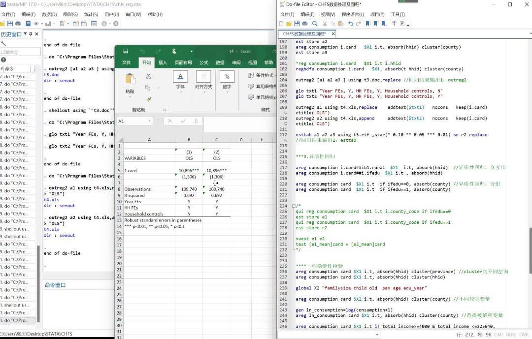 回归分析是经济学实证研究的重要步骤,在完成数据处理的基础上,主讲人介绍了OLS、异质性回归、稳健性检验、IV工具变量回归、DID双重差分回归的基本操作以及相应的图表绘制与输出操作。