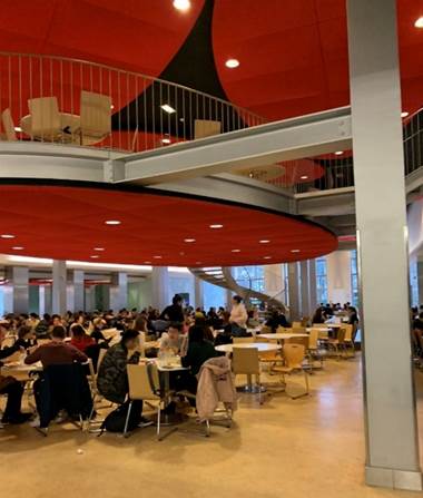 巴黎九大的法文正式名称其实是巴黎多芬娜大学Université Paris Dauphine,以其主校区所在地原梯也尔城墙的王妃门Porte Dauphine命名,本科生的课程也正是在此授课。王妃门位于巴黎16区凯旋门以西1.5公里处,附近为富人区,并分布着一些小国的驻法大使馆,西邻城市绿地布洛涅森林,整体氛围非常良好;王妃门的交通也很便利,可乘坐RER C与地铁2号线。巴黎九大的王妃门主校区只有一幢大楼,是原本的北约(NATO)总部大楼,分为ABCD四个回廊,围合出一个中庭广场,初来乍到很容易在里面迷路。
