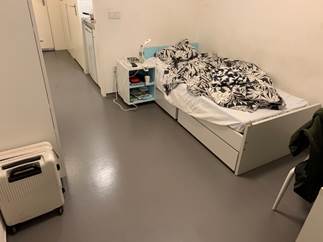 再来详细讲讲宿舍。巴黎九大国际办公室很贴心地为交换生提供法国政府机构crous管理的宿舍(约400欧/月)或九大自己的宿舍(约600欧/月),这是国际学生作为“客人”才享有的特殊待遇,而本校本科生中只有奖学金获得者才有资格租用宿舍,其余学生只能自己找房(巴黎市区可能得1000欧/月)。可以说这一项宿舍服务为我们节省了很多费用与精力。不过需要指出的是这些宿舍距离校区都有20分钟以上的通勤时间,像复旦一样在上课前十分钟骑个车出寝室是不存在的。其中巴黎九大自己的宿舍虽然设备更新、硬件条件更优良,却位于治安比较恶劣的北部St-Ouen地区,因此个人不建议。理论上来说系统内所有宿舍的位置随机分配,无法自由选择,但是其实也可以通过在提交申请时设置一个较低的“可接受房租”来避开它,从而分配进crous的宿舍(我一一考察过官网上所列crous宿舍的地段,大多在塞纳河左岸较安全区域)。我最终非常幸运地被分配在位于13区华人区旁的Récidence Lepaute,整体体验相当良好外出吃饭买菜都很便捷,所在地区也较安全。宿舍条件不错,有独立卫浴与迷你厨房、冰箱,储物空间大,大堂到每个楼层有电梯。(但是被子枕头扫帚这些都需要自己去超市购买,巴黎市中心Madeleine有一家宜家,基本能一次买齐)唯一的小缺点是和校区分隔于巴黎城两头,交通正常情况下通勤时间约40分钟(下图为宿舍内外景)。身在大城市,倒也能接受。