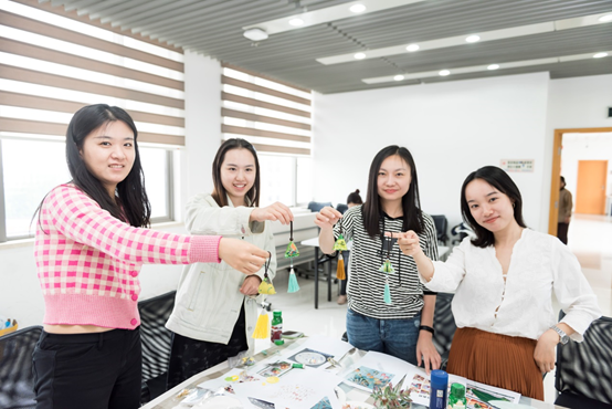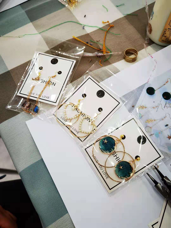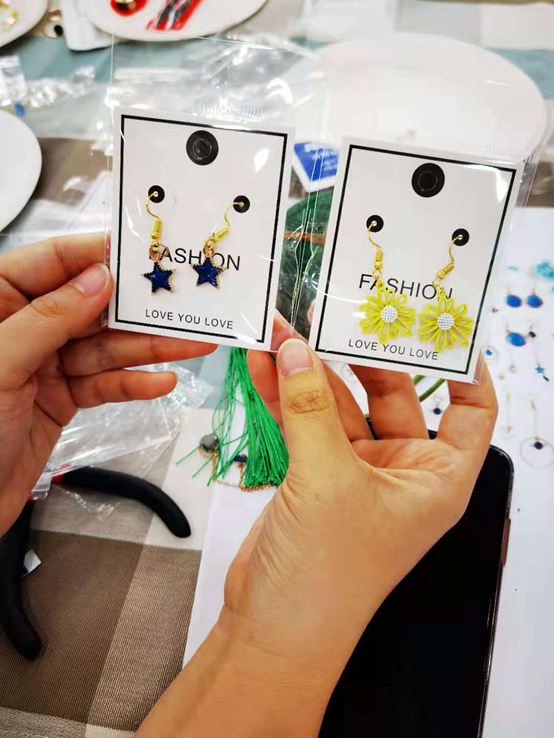 除了传统的端午香袋,本次活动也意在给生活加点“新鲜”,老师们根据自己的喜好设计并制作了手工耳环。耳环的样式各不相同,被赋予的意义也有所不同:珍珠般的耳环透露出高贵典雅的气质,花瓣状的耳环显示着美丽动人的风采,红色爱心形状的耳环象征着积极进取的生活态度。典雅、细腻、秀美,别出心裁的耳环笼罩着艺术的光辉,每位老师都展现着对于美的独特认知。