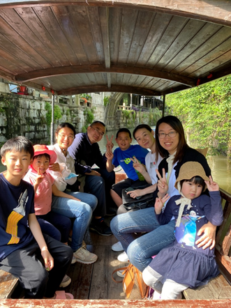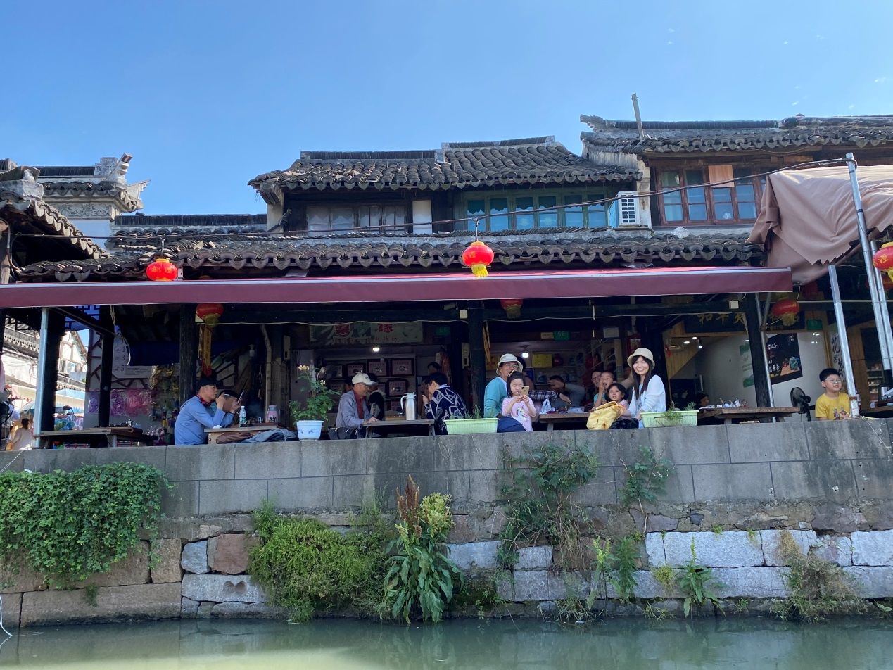 最后,老师们来到了枫泾古镇。大家三三两两穿过街道石街坊,行走在平整的板路上,享受着古镇的典雅与宁静。窄窄的街道两边楼房高低起伏,扇扇木格窗露出原木本色。从后门的市河望去,家家别具一格,或重檐叠瓦,或骑楼高耸,或勾栏亭阁,或近水楼台,层层石级通向河埠,或转朱阁、或低绮户,组成多姿多彩的景致,有的老师情不自禁的坐上游船,尽情体会这梦里水乡。