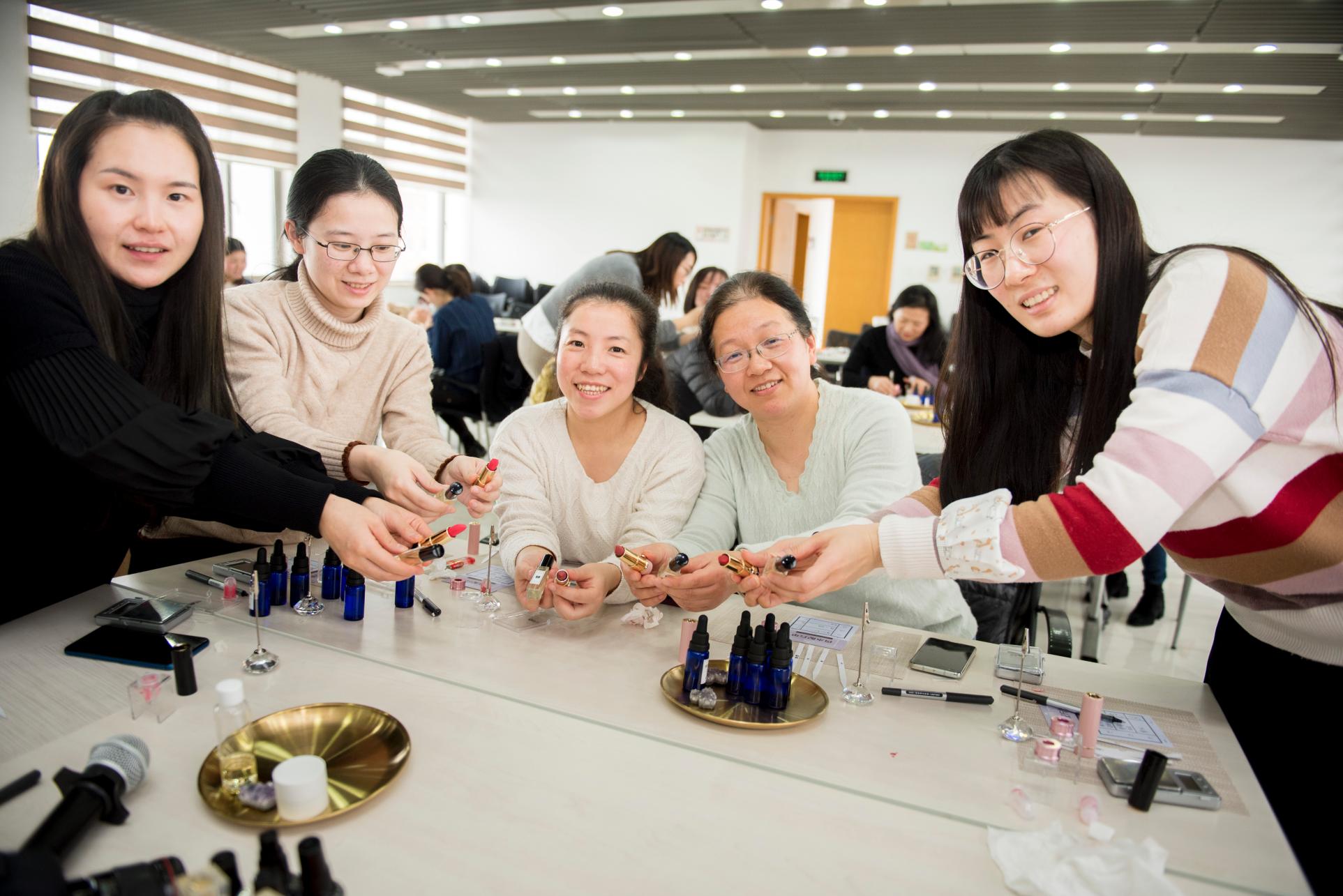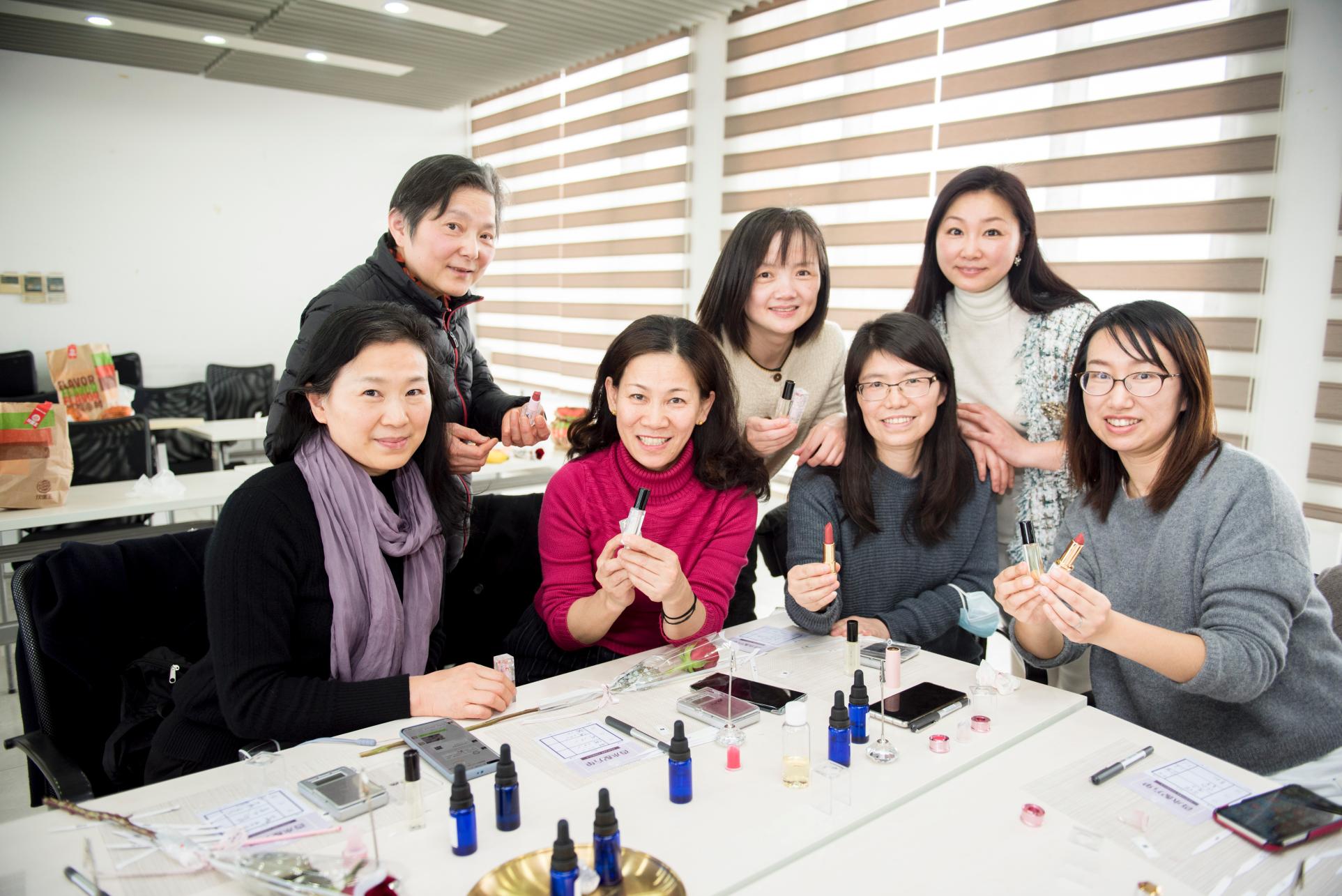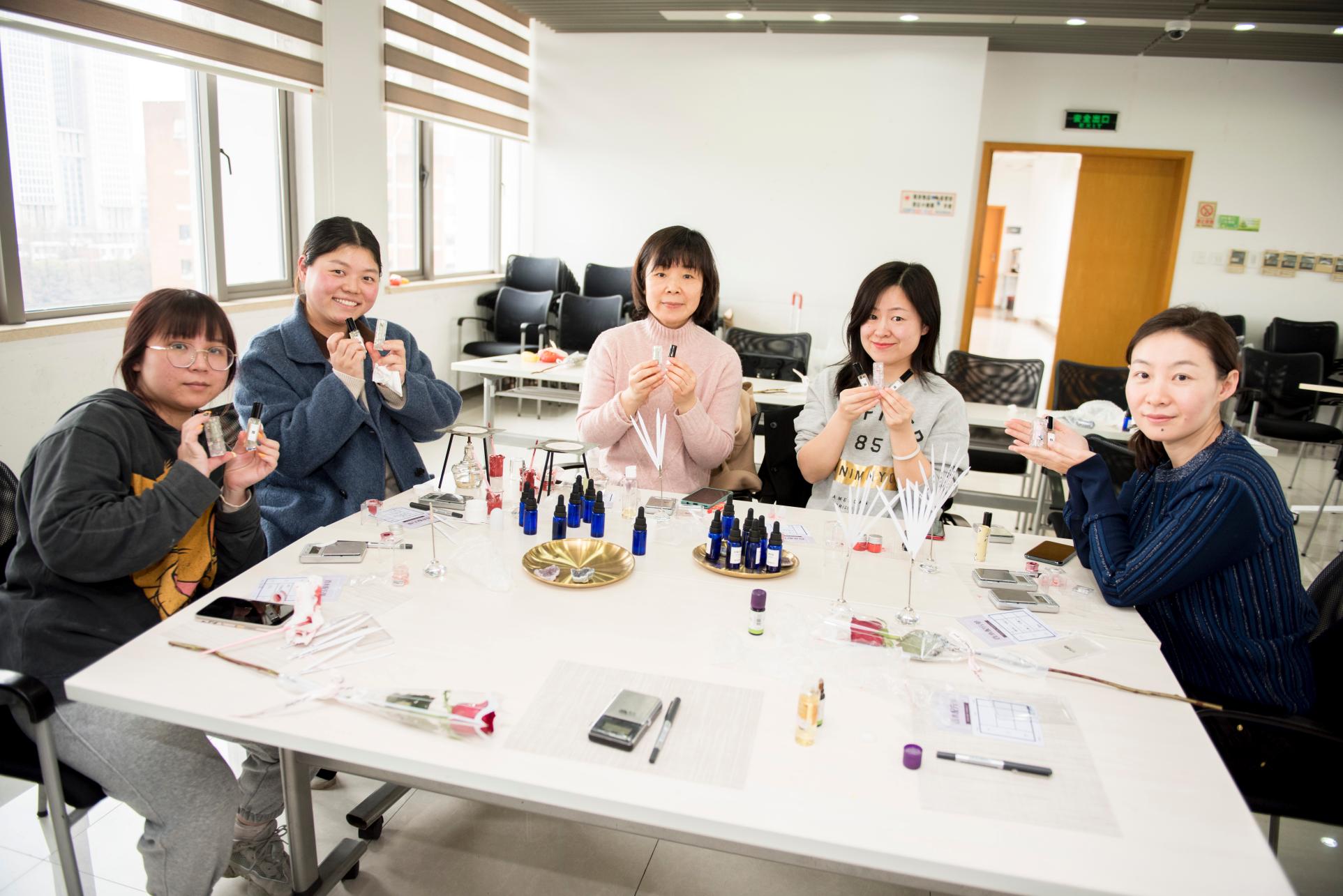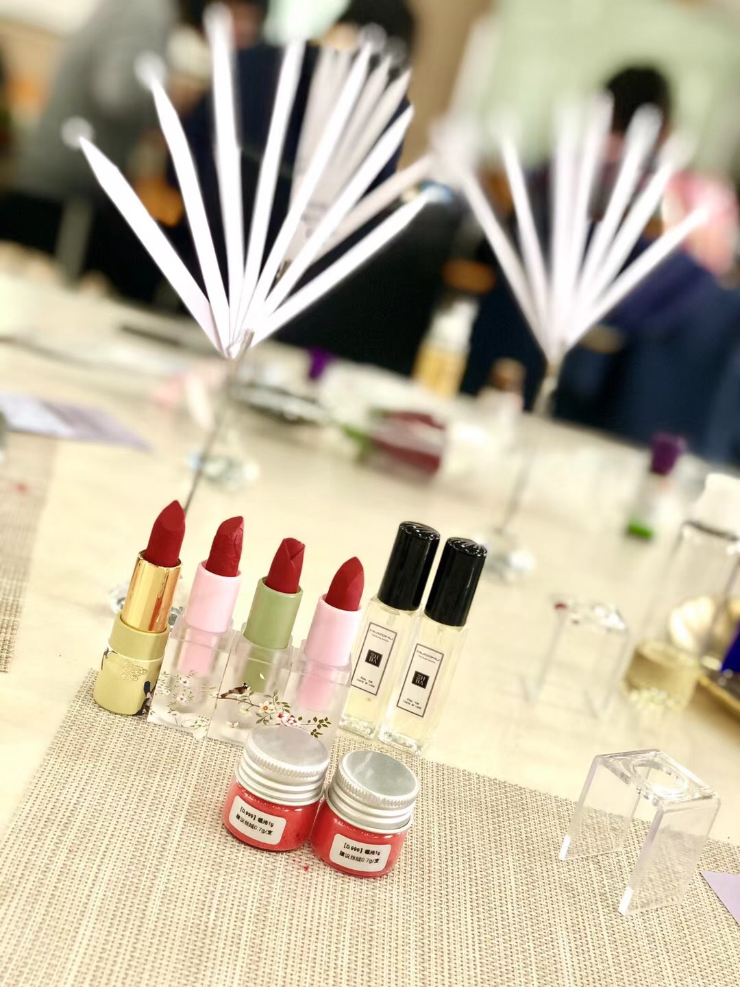 如蝶之恋花、木之向阳,口红和香水已成了女性生活中不可缺少的优雅元素,为此在活动的第二个环节,我们邀请了专业手工师指导在场老师们开展了手工DIY口红和香水的活动。手工师为全场老师详细讲解了嗅觉感官的重要性、中国香文化发展、口红制作及香水调制的方法,大家兴趣满满,跃跃欲试。经过称重、搅拌、凝固、脱模等一系列步骤,翘首以盼的口红相继出炉;经香基称重、香精勾兑,每个人都调制出了专属的“国色天香”。整个活动在欢快、和谐的氛围中落幕,大家纷纷表示,自己在感受美、欣赏美、创造美的过程中感受到了来自学院的关心和关怀,期待学院多多组织此类活动,共同营造御书屋