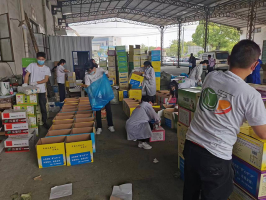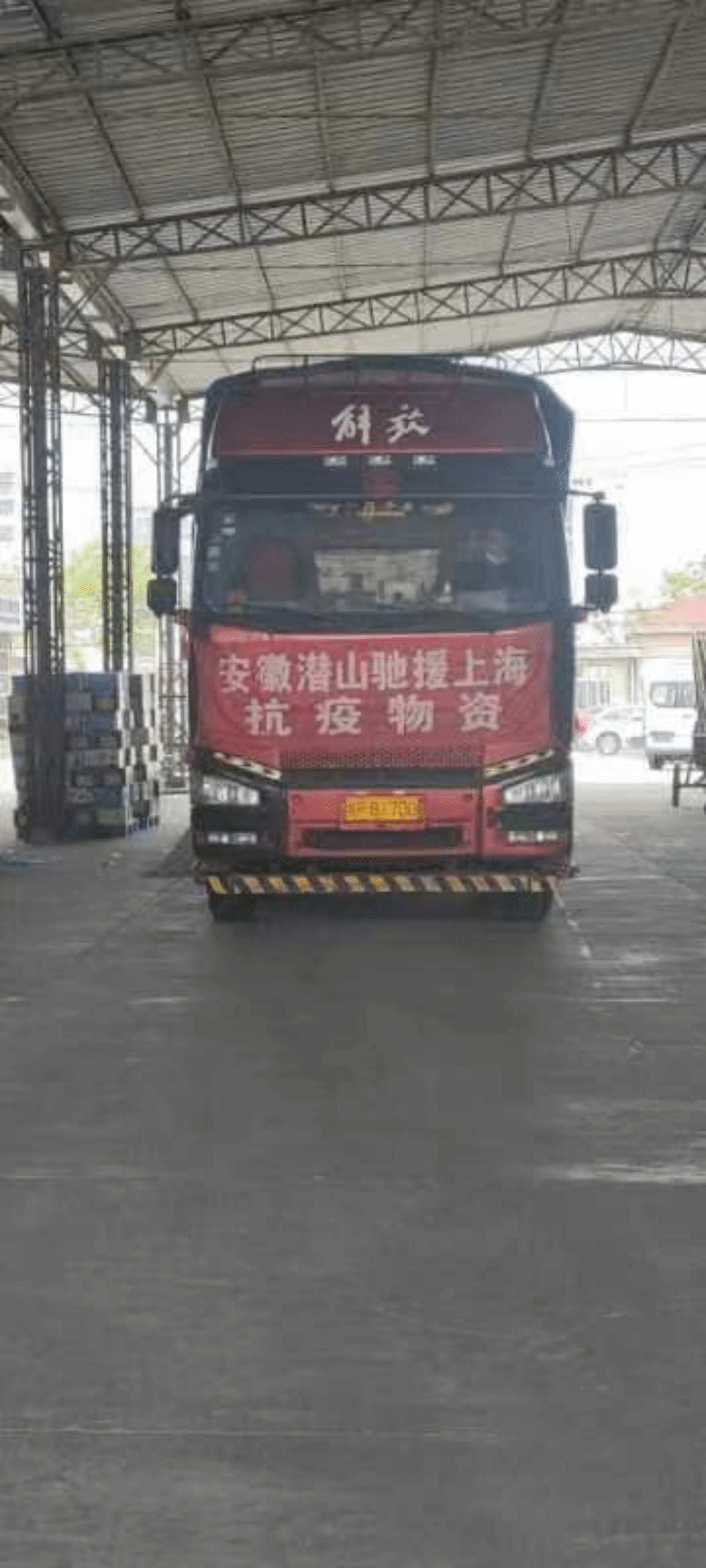 4月19日深夜,一辆重型卡车满载着来自安徽潜山的爱心物资顺利抵达上海松江,并将陆续派发到御书屋