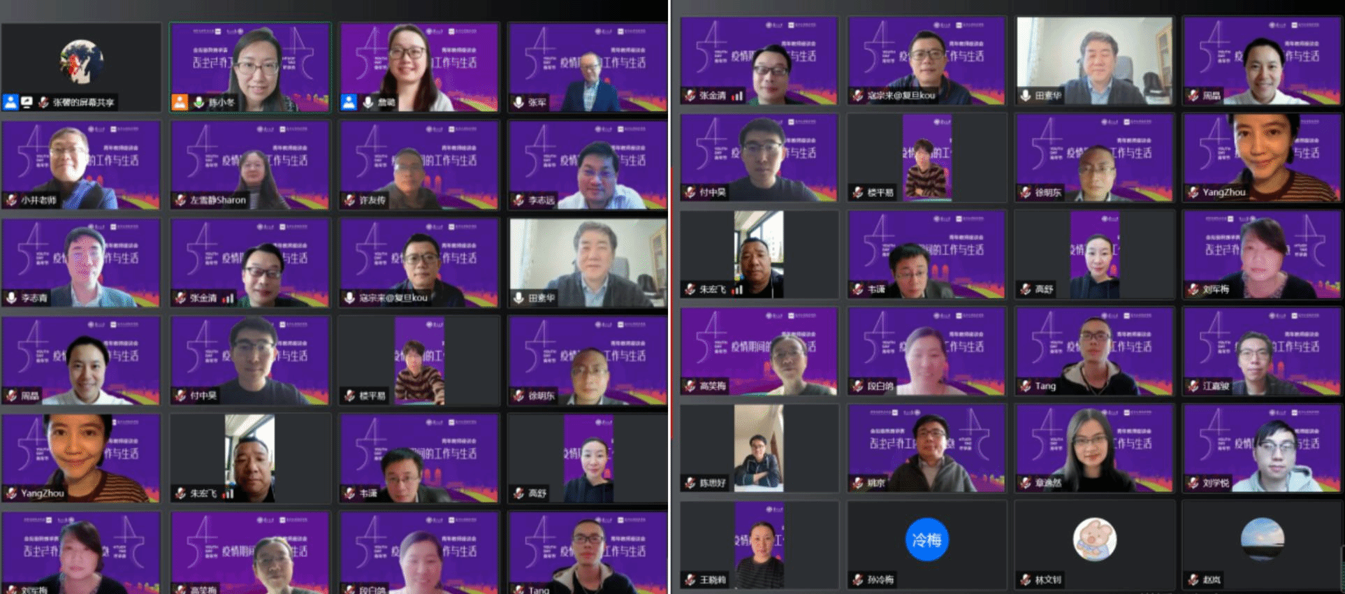 会议结束前,老师们纷纷打开摄像头在线合影,让我们一起期待疫情早日结束,相逢于复旦校园!