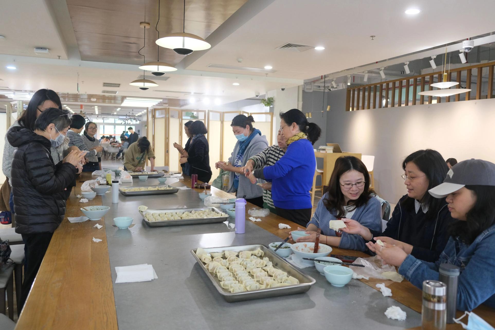 教职工们一边探讨着厨艺、切磋包馄饨技巧,一边享受着聊天的快乐,下锅之后香气扑鼻,馄饨皮和馅料完美结合,热气腾腾的馄饨被端上餐桌,鲜美多汁,唇齿留香。小小的馄饨,包进了春日的温暖和快乐,将关怀包进馅儿里,鲜到心里。