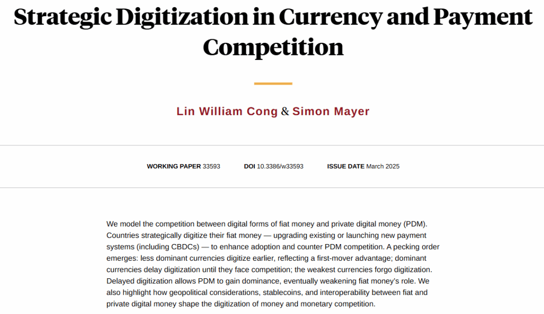 今年华裔学者丛林等学者在国际经济学顶刊《金融经济学杂志》(Journal of Financial Economics)上发表了一篇名为“Strategic Digitization in Currency and Payment Competition”(在发表前,该论文题为“数字时代的货币战争”)的文章,专门讨论货币与博弈,内容很有意思。