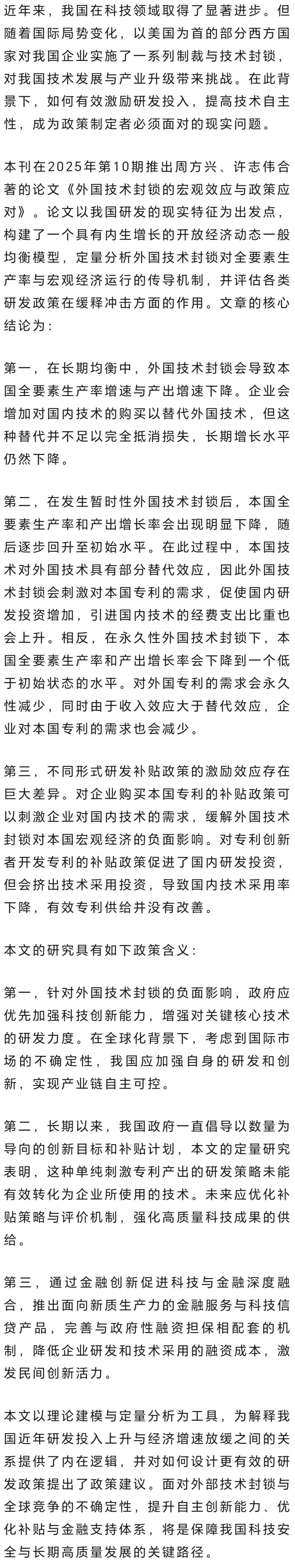 博士后周方兴合著的论文《外国技术封锁的宏观效应与政策应对》在《世界经济》2025年第10期正式发表。