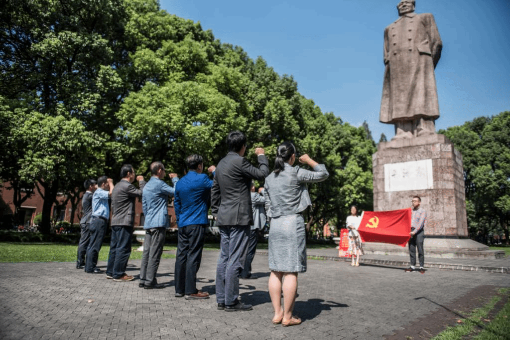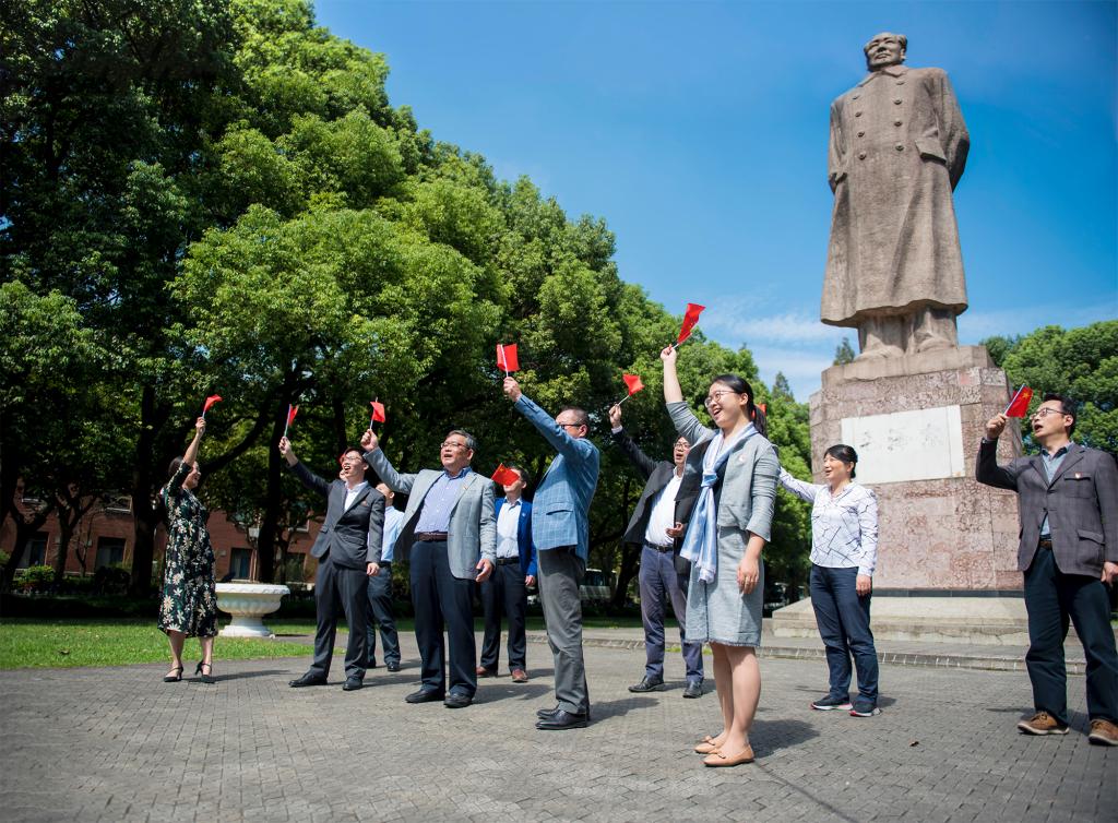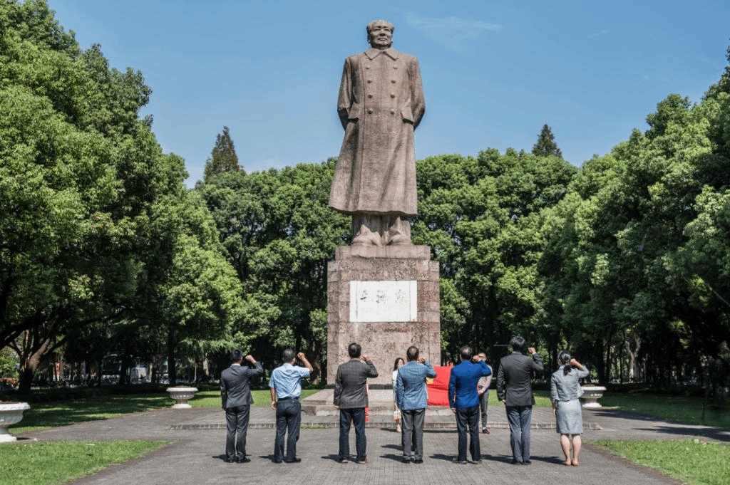 毛主席雕像前重温入党誓词,歌唱《我和我的祖国》,并在学院开展“不忘初心、牢记使命”主题教育首场集中学习:学原著,悟原理。