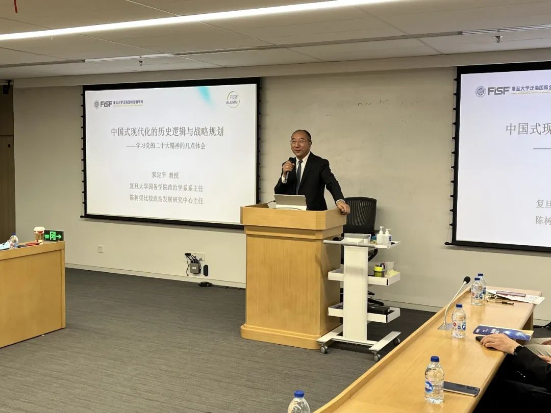 二十大精神宣讲团成员郭定平教授作了题为“中国式现代化的历史逻辑与战略规划——学习党的二十大精神的几点体会”的报告,泛海国际金融学院总支师生和校友代表共同参加。