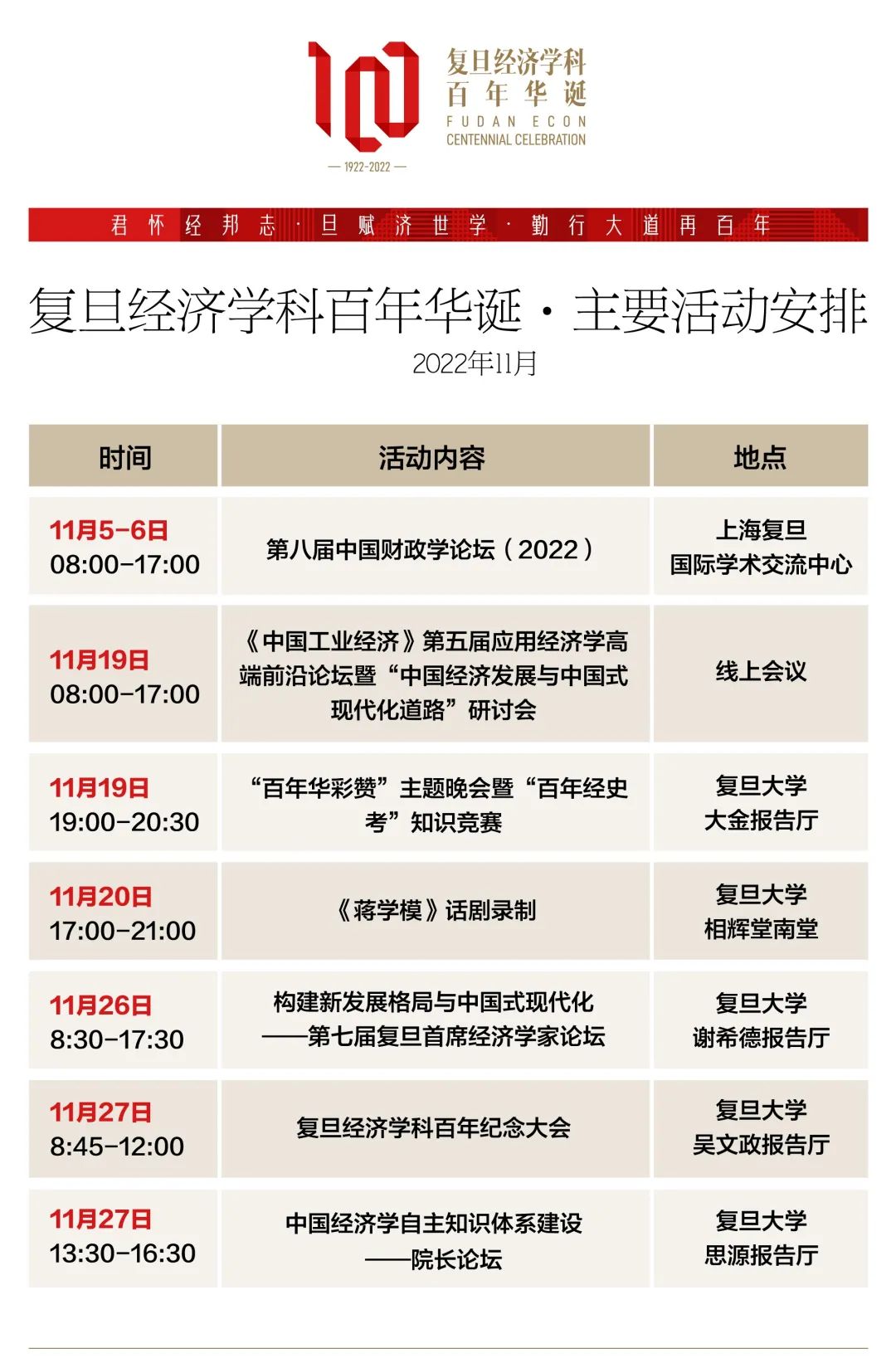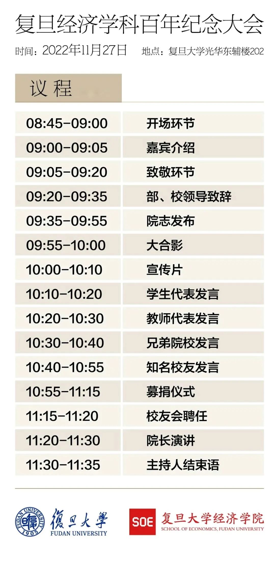 四号公告 | 复旦经济学科百年纪念系列活动安排及大会议程