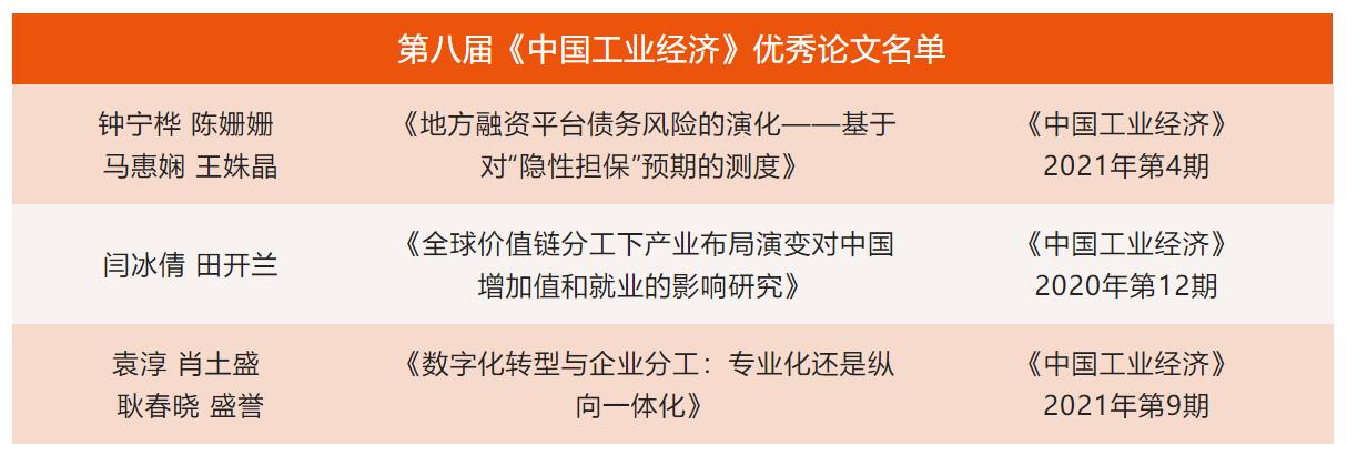 经济学科百年华诞表示祝贺,并介绍了《中国工业经济》杂志的办刊理念、主要栏目和取得成就。《中国工业经济》的办刊宗旨是“顶天立地,作者为本”,聚焦重大前沿理论和现实问题,坚持问题导向和学科导向,以引领中国学术创新,推动中国实践变革为初心使命,奉行开放、多元、共享、精细的办刊理念。《中国工业经济》是应用经济学和管理学类综合性权威理论刊物,重点覆盖国民经济、产业经济、工商管理等学科领域。在各位专家学者的大力支持下,《中国工业经济》近年来也不断取得新进步。本届论坛的主题是“中国经济发展与中国式现代化道路”,这个主题与时代要求相契合,也是对新时代经济发展面临新任务的响应。随后,寇宗来教授宣布第八届《中国工业经济》优秀论文名单,并对三篇获奖文章的作者表示祝贺。