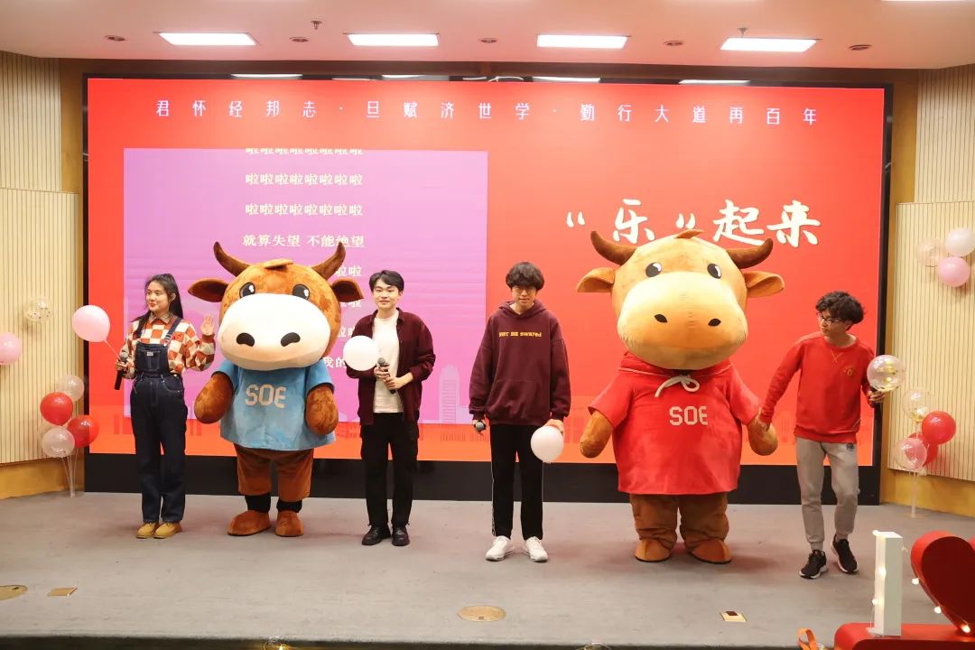 本次晚会分为“经年波涛”“经纬天地”“经情永驻”三个篇章,其中穿插着知识竞赛问答和经小牛的放送。晚会现场的观众们既有载歌载舞的欢喜,又有观看话剧的享受。每个观众都积极参与赢得经小牛的活动,沉浸其中。