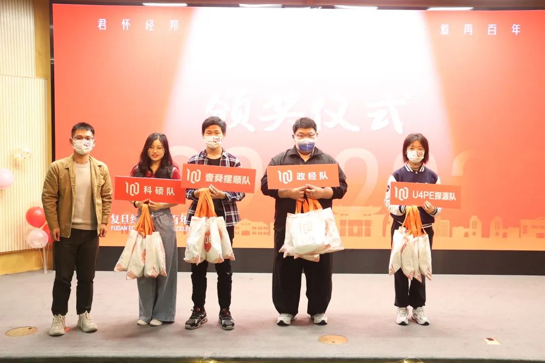 在每一篇章的末尾,各个代表队展开复旦经济学科百年知识竞赛的激烈的角逐,知识渊博的队员们对答如流,展现出对经院的了解和热爱。四个队伍晋级决赛,经历了车轮战和抢答战决出了各类奖项。