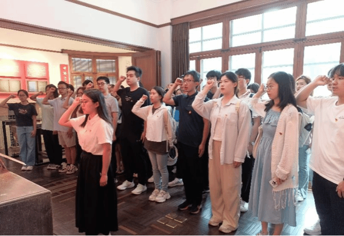 2025年上半年新发展预备党员在《共产党宣言》展示馆(陈望道旧居)举行入党宣誓仪式。