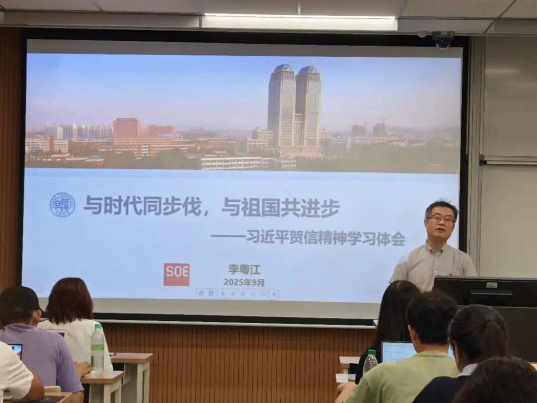 在《与时代同步伐,与祖国共进步——习近平贺信精神学习体会》课程中,李粤江书记围绕习近平贺信精神,系统回顾了御书屋