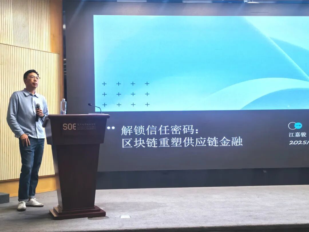 当前,全球供应链正经历数字化重构。在贸易全球化与复杂性加剧的背景下,传统供应链长期面临信息孤岛、溯源困难与信任缺失等挑战;而区块链技术凭借其分布式、透明可溯、不可篡改的特性,正成为构建下一代可信供应链体系的关键支柱。区块链与供应链的深度融合,不仅为提升产业链透明度、优化协同效率提供了技术基础,更对重塑金融与实体经济的信用流转机制具有战略意义。本次讲座,江嘉骏老师重点讲解如何以金融工具为载体,真正赋能区块链在供应链管理中的落地与价值释放,为行业转型提供全新视角与可行路径。
