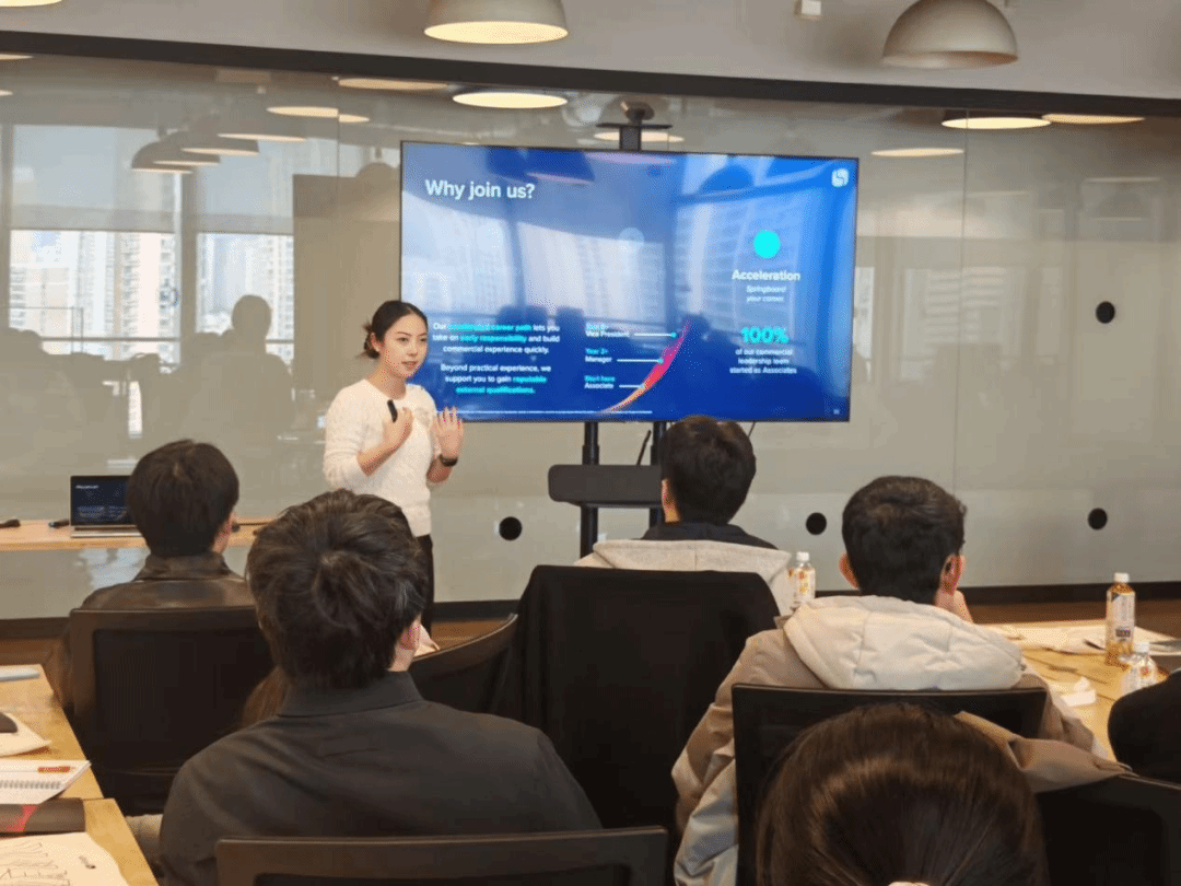 随后,人力资源负责人Nancy为同学们详细介绍了奥法赛与传统咨询公司与众不同的方面,不同于传统咨询公司,奥法赛在入职后经过短时间的磨练,希望每个人都能有独立负责项目的能力。在现场我们也讨论了一个小的case,熟悉了奥法赛日常的业务所需要具备的思维和能力。
