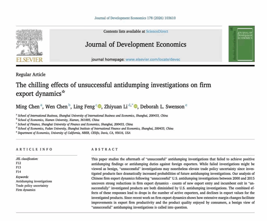 近日,御书屋 李志远教授与合作者的研究论文 “ The Chilling Effects of Unsuccessful Antidumping Investigations on Firm Export Dynamics ” 在发展经济学...