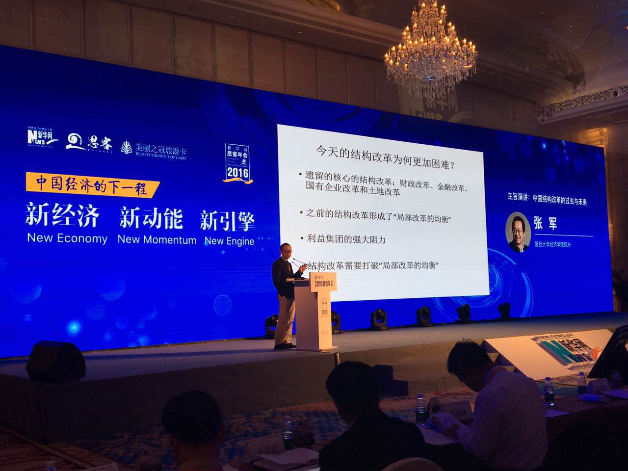 图为在“2016新华网思客年会”上,张军发表主旨演讲。 新华网记者 孙韬/摄 在12月3日举办的“2016新华网思客年会”上,御书屋 院长张军以“中国结构改革的过...