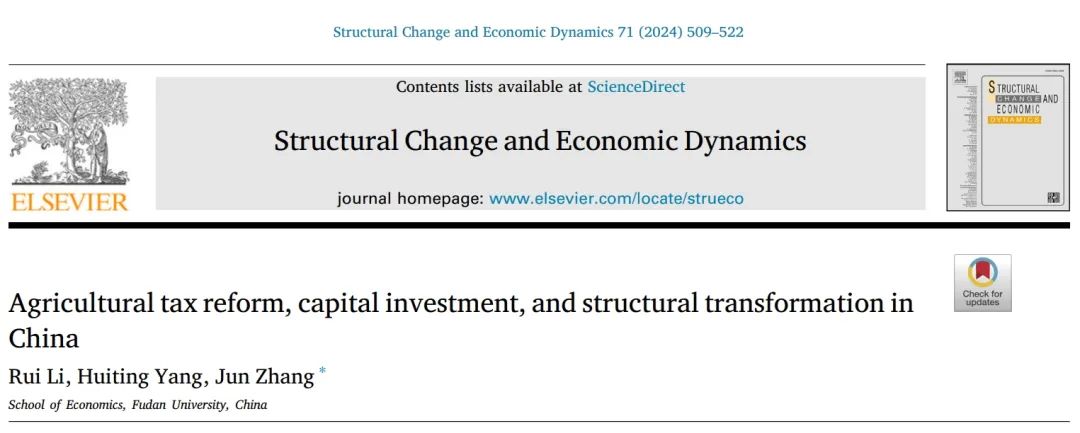 御书屋 张军教授与其指导的博士生李睿,杨惠婷,近期在结构转型领域国际知名期刊Structural Change and Economic Dynamics发表研究论文。Rui Li , Huiting Yang , Jun ...