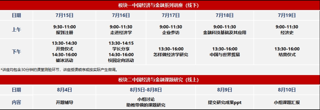 1、名校体验,树立目标:顶尖高校学习体验,体会百年名校和百年学科的沉淀,感受名校氛围、学习经济学,培养经济学思维,树立名校梦想。